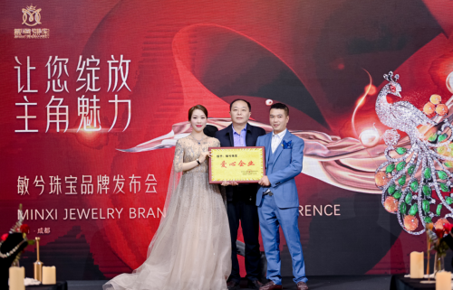 發(fā)布會(huì)現(xiàn)場(chǎng),精彩絕倫的歌舞表演讓現(xiàn)場(chǎng)嘉賓如癡如醉,誠(chéng)意十足的抽獎(jiǎng)環(huán)節(jié)更是讓現(xiàn)場(chǎng)持續(xù)升溫。除了極致的視聽盛宴,敏兮品牌還致力于用珠寶傳遞愛心,和現(xiàn)場(chǎng)的嘉賓共同進(jìn)行了慈善捐助。四川省紅十字基金會(huì)理事長(zhǎng)劉國(guó)平、成都公益慈善創(chuàng)新孵化聯(lián)合會(huì)副會(huì)長(zhǎng)孔勝英還現(xiàn)場(chǎng)為捐贈(zèng)嘉賓頒發(fā)了慈善證書,以弘揚(yáng)慈善文化,助推慈善事業(yè)。